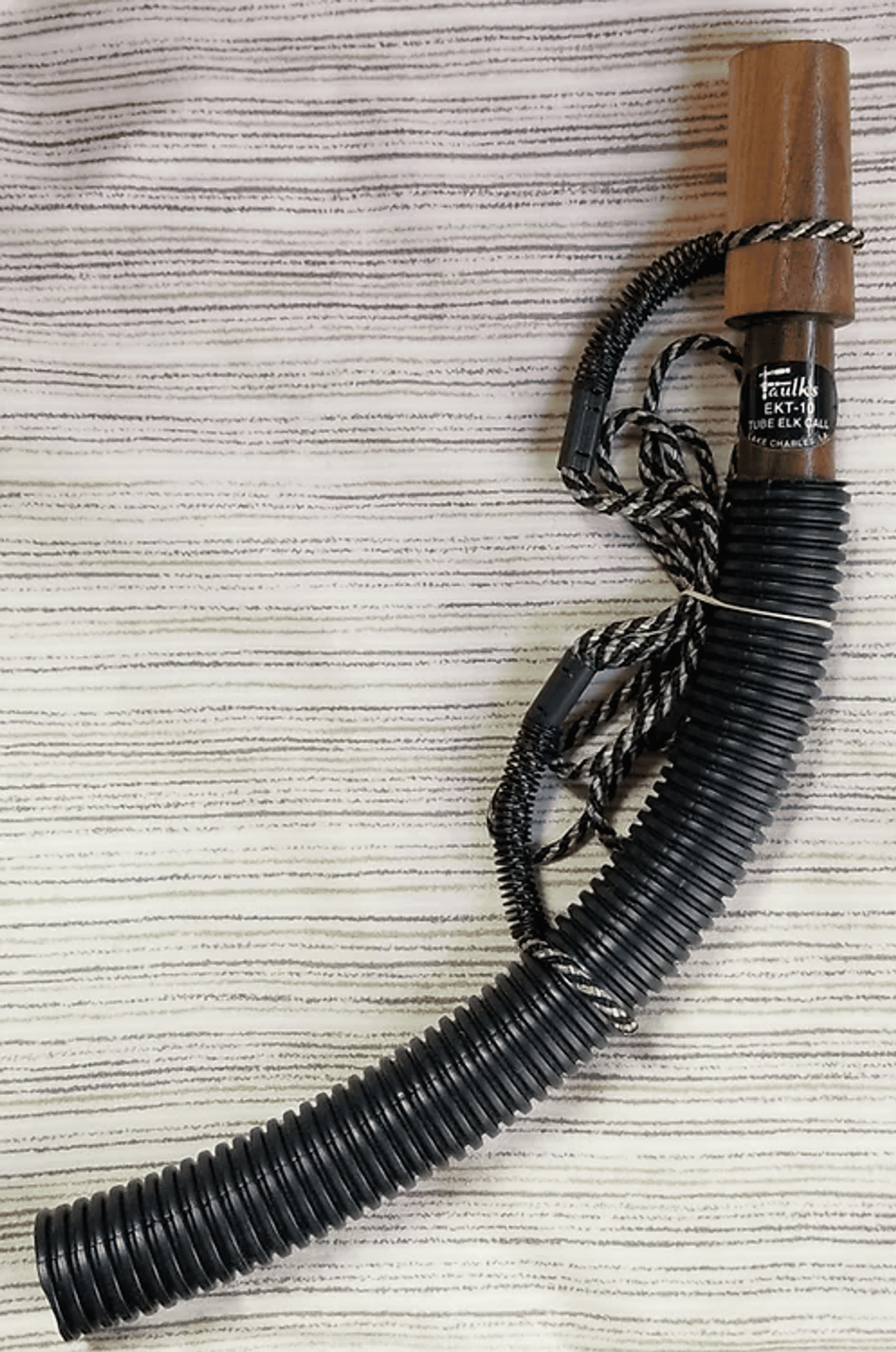 2 in 1 call made of walnut and plastic tube. Produces sound of either cow or bull elk.
